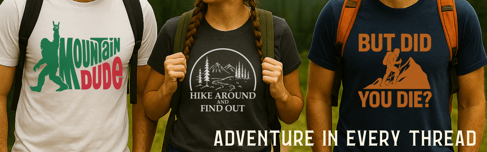 We're not just slapping a mountain on a shirt and calling it a day. Wander Worn designs are inspired by real trail life — the highs, the lows, the inside jokes only fellow dirtbags understand. If you’ve ever filtered water with one sock or cried over a crushed granola bar, welcome home.